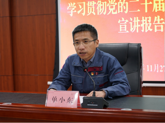 单小东围绕习近平总书记在党的二十届四中全会上的重要讲话和《中共中央关于制定国民经济和社会发展第十五个五年规划的建议》,紧扣“五个讲清楚”要求,从深刻领会党的二十届四中全会的重大意义和核心要义、全面把握全会部署的战略任务与推动佛慈集团高质量发展的结合点、狠抓贯彻落实确保全会精神在佛慈集团落地生根等方面,结合集团工作实际,对全会精神进行全面宣讲和系统解读,对抓好全会精神贯彻落实提出具体要求。