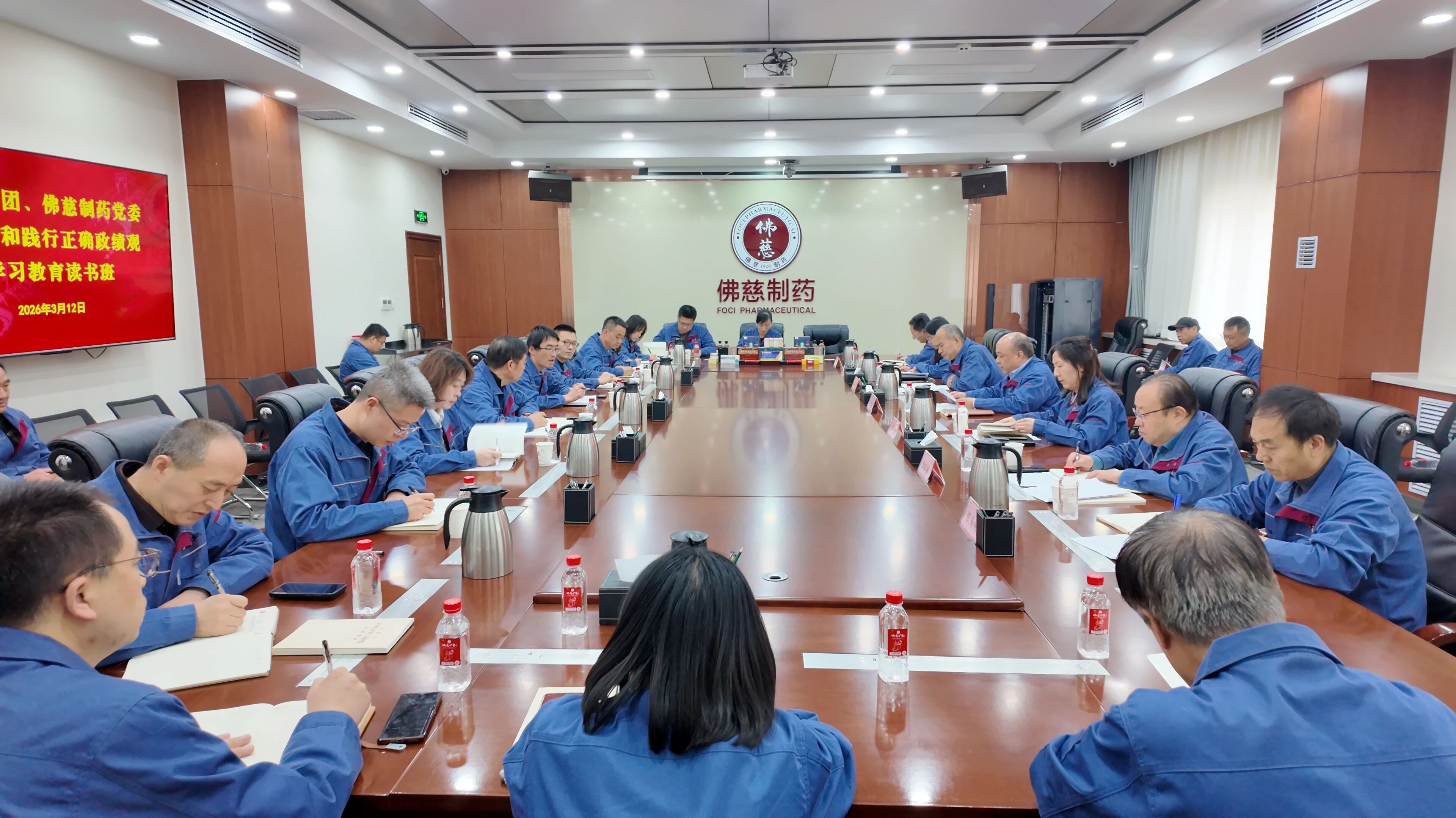 3月12日,佛慈集团党委理论学习中心组树立和践行正确政绩观学习教育读书班开班并举行第一次集中学习。佛慈集团、佛慈制药领导班子成员、董事会秘书、财务总监、总经理助理,各部室、子公司负责人,各党支部书记参加学习。